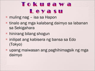 Ang simula ng japan Ang Hapones ay binubuo ng pinaghalong lahi ng mongol tsino malay at ainu. Matatagpuan ang mga ito sa halos lahat ng bahagi ng Tsina. Ang Bansang Japan-2 1.